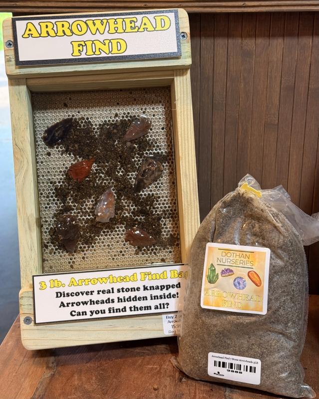 Arrowhead Find is all about uncovering pieces of the past. This sluice bag is filled with real arrowheads and stone artifacts, mixed into rough material that reveals its surprises as the water flows.
